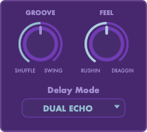 This section is all about musical timing and character. Groove introduces shuffle and swing behavior to the delay timing, adding rhythmic movement that feels human rather than mechanical. Feel pushes the delay slightly ahead of or behind the beat, creating a rushing or dragging sensation that can add urgency or laid-back flow without changing the synced delay value. Delay Mode defines how the delay engines interact internally, shaping stereo behavior and rhythmic response. Combined, these controls let you sculpt delays that lock into the groove of a track instead of rigidly following the grid.