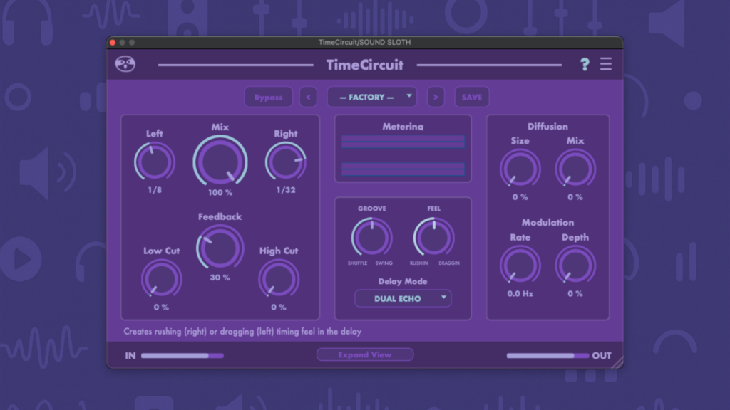 TimeCircuit is a creative stereo delay that adds groove, movement, and character through independent left/right timing, swing, diffusion, and modulation—turning simple echoes into expressive rhythmic motion.